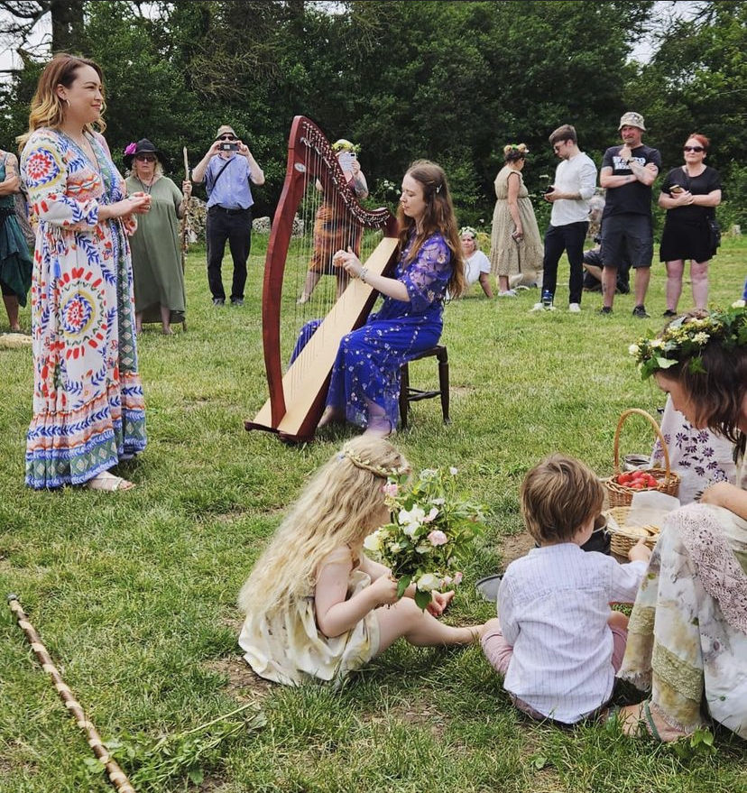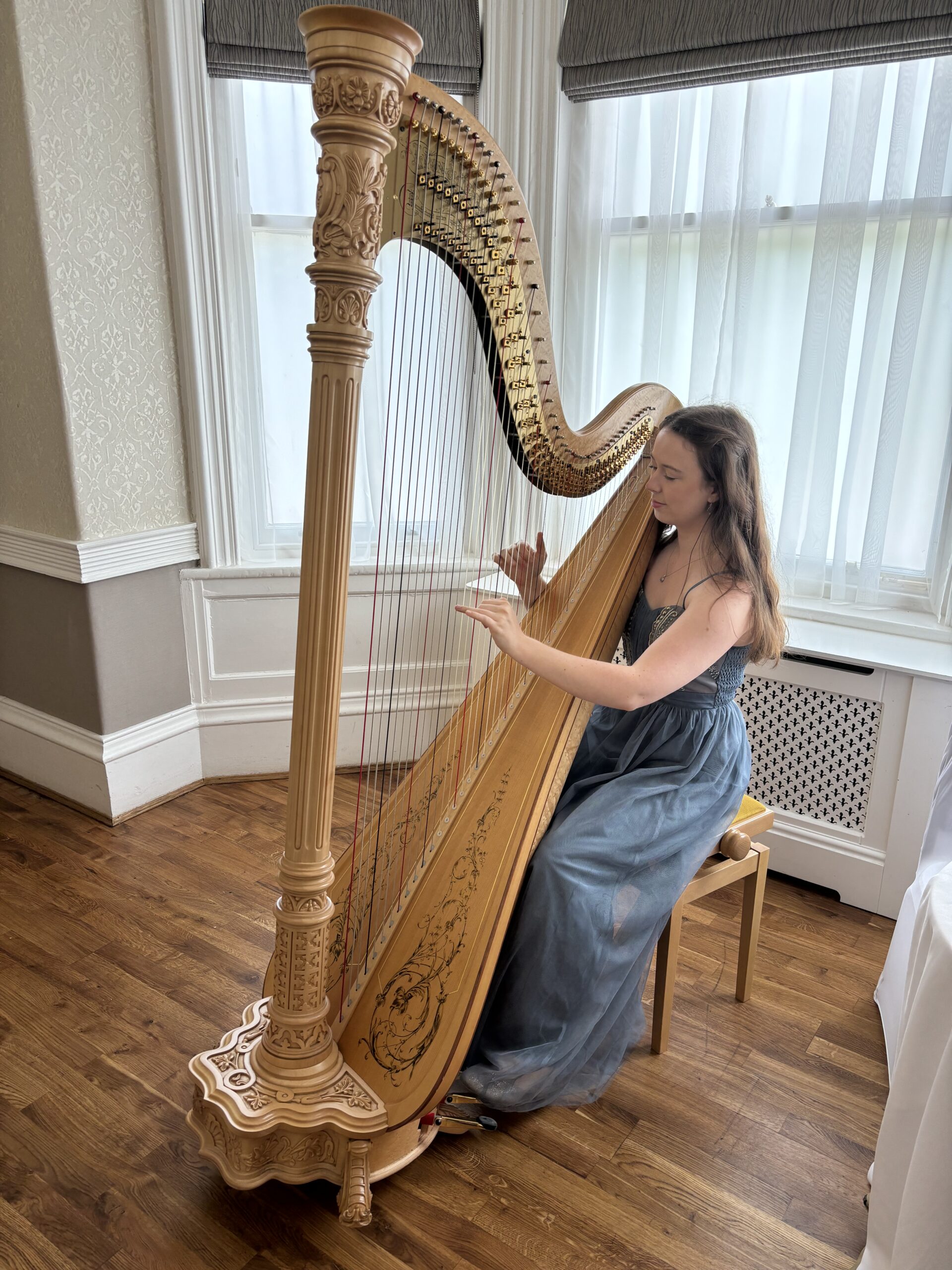 Harps are delicate instruments and are primarily designed for indoor use. That said, I’m very happy to perform outdoors as long as the conditions are suitable. I require a flat area measuring approximately 2×3 metres —ideally surfaced with paving, tiles, or wooden decking, not grass or gravel.